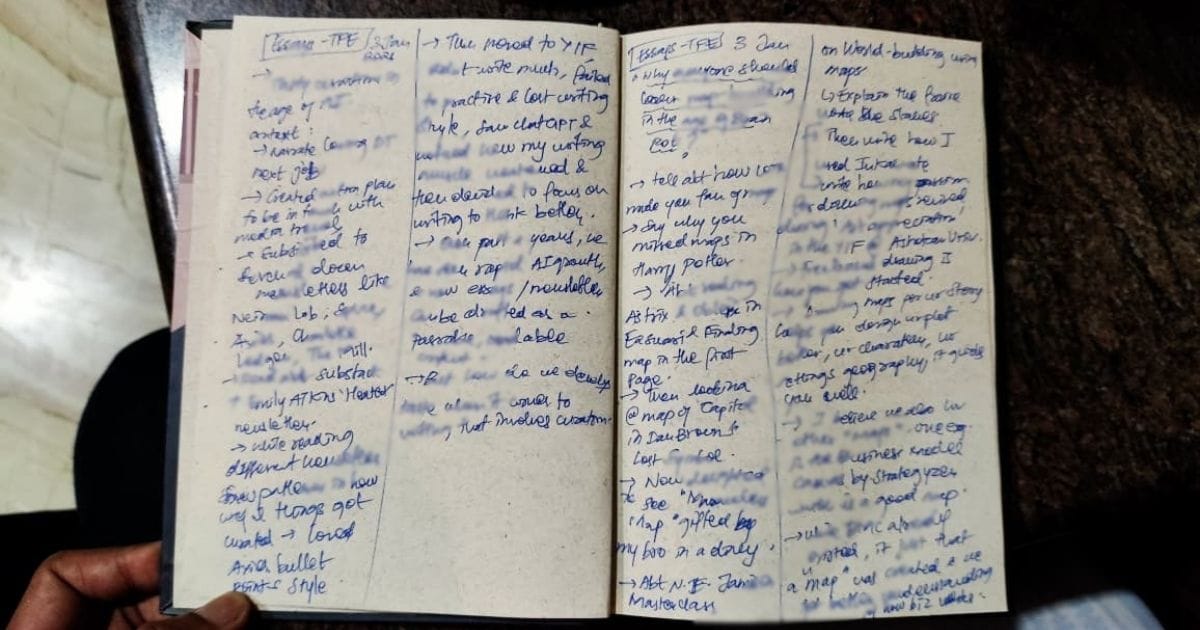 Questions like these are the fisherman’s net that I cast out to capture the spinning words that rumbles in my head. And to give them a structure further, I use Wispr Flow (a voice-to-text dictation tool) and I yap out loud by referring to my handwritten notes (that are just crisp words of tiny sentences). [I wrote in detail about this process in my earlier edition: Is Speaking Out Loud Grammar’s Last Defense?]